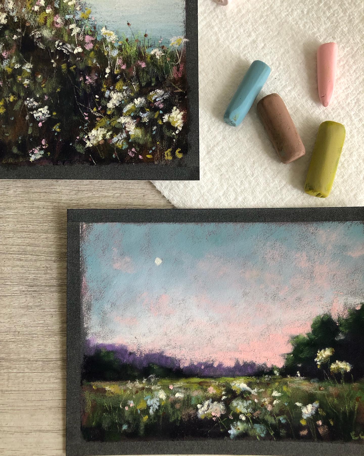 These little sticks of pigment are relatively new to me. I stumbled across a course on soft pastels via The Crafters Box in 2022 and have enjoyed painting with them for the past year and a half. Pastels are a little bit magical. The layers and colors are so unique and capture the whimsical feeling I want to relay in a landscape painting. I am excited to lean more into this medium in the coming year.